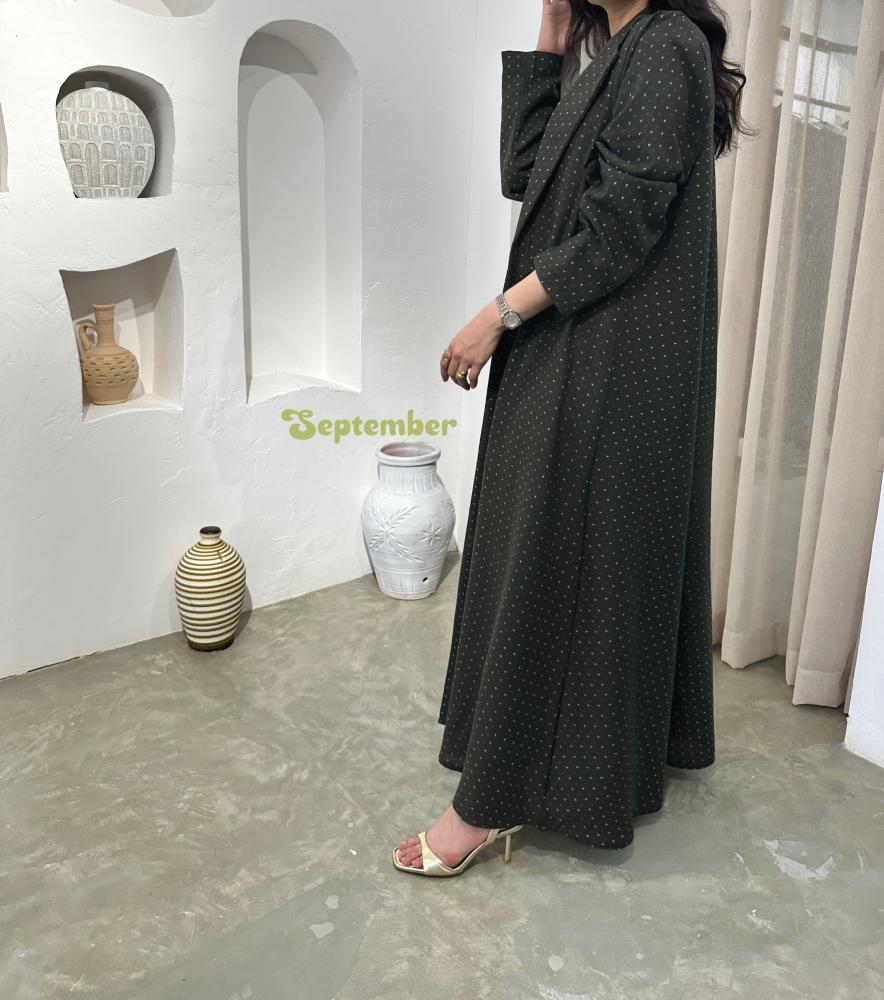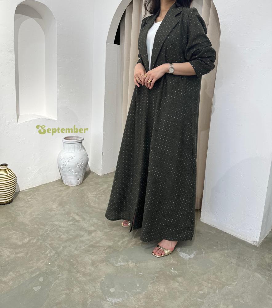 عباية أنيقة بليزر مصممة باللون الزيتي ويمكن تغيير اللون للأسود.